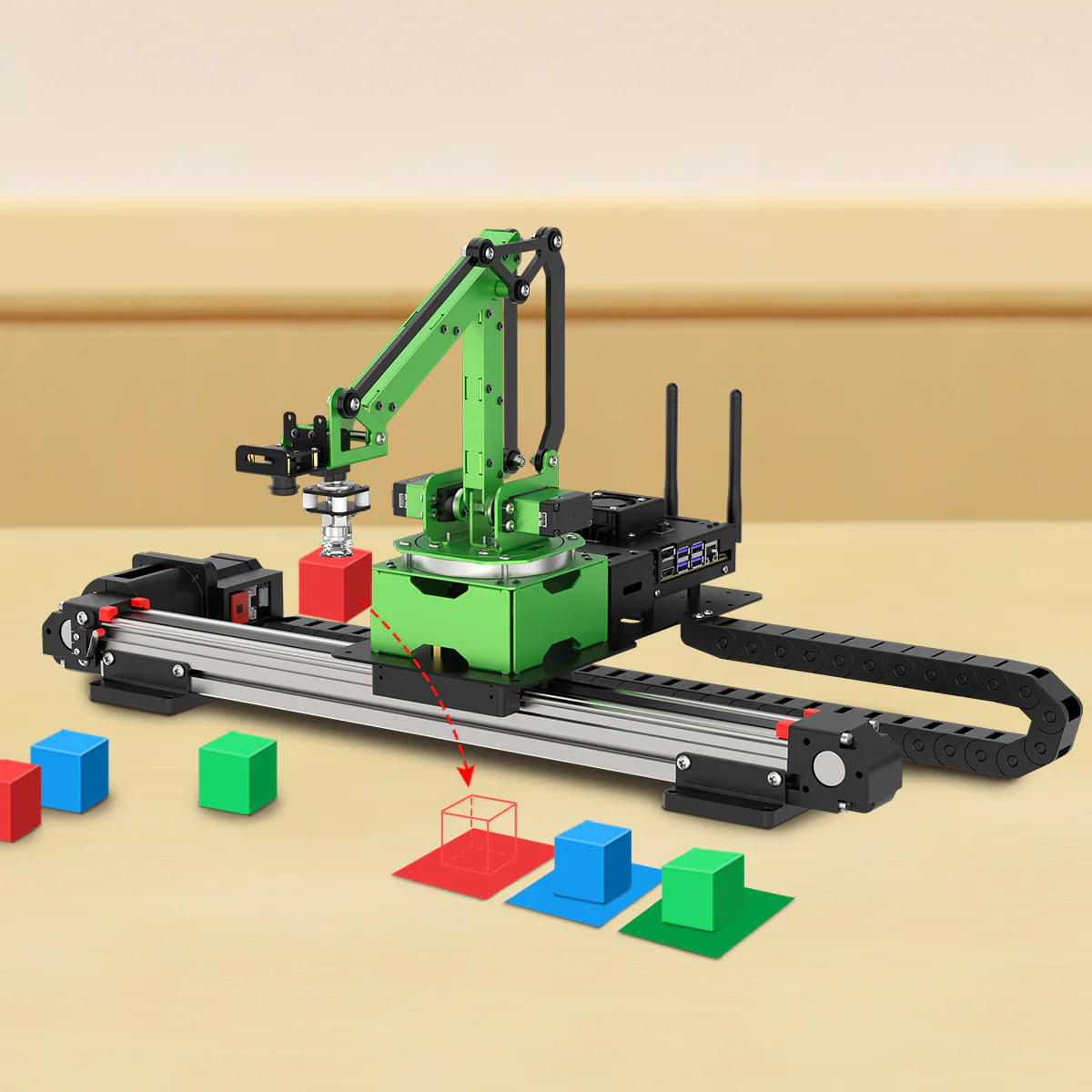 Hiwonder JetMax Pro Cánh tay Robot JETSON NANO với khung gầm bánh Mecanum / Hỗ trợ thanh trượt điện, ROS Python Sử dụng Jetson Nano (đã bao gồm) Mã nguồn mở và phát triển dựa trên ROS Hỗ trợ deep learning, huấn luyện mô hình và động học nghịch Tích hợp nhiều cảm biến phong phú để mở rộng chức năng Mô hình robot có thể thay đổi với khung gầm bánh Mecanum hoặc thanh trượt điện