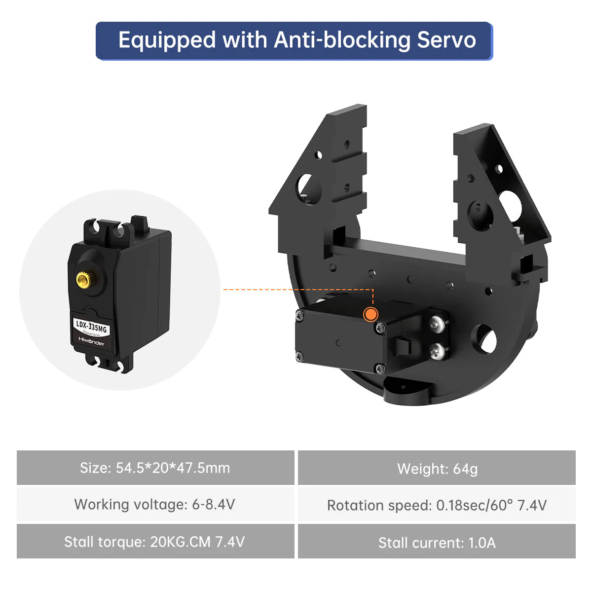 Hiwonder Plastic Gripper for Hiwonder Robot and Smart Car: Kẹp gắp nhựa Hiwonder dành cho robot và xe thông minh Lắp đặt trên robot hoặc xe thông minh Gắp vật ổn định và chắc chắn Độ mở tối đa lên đến 54mm Tương thích với nhiều loại servo kích thước tiêu chuẩn
