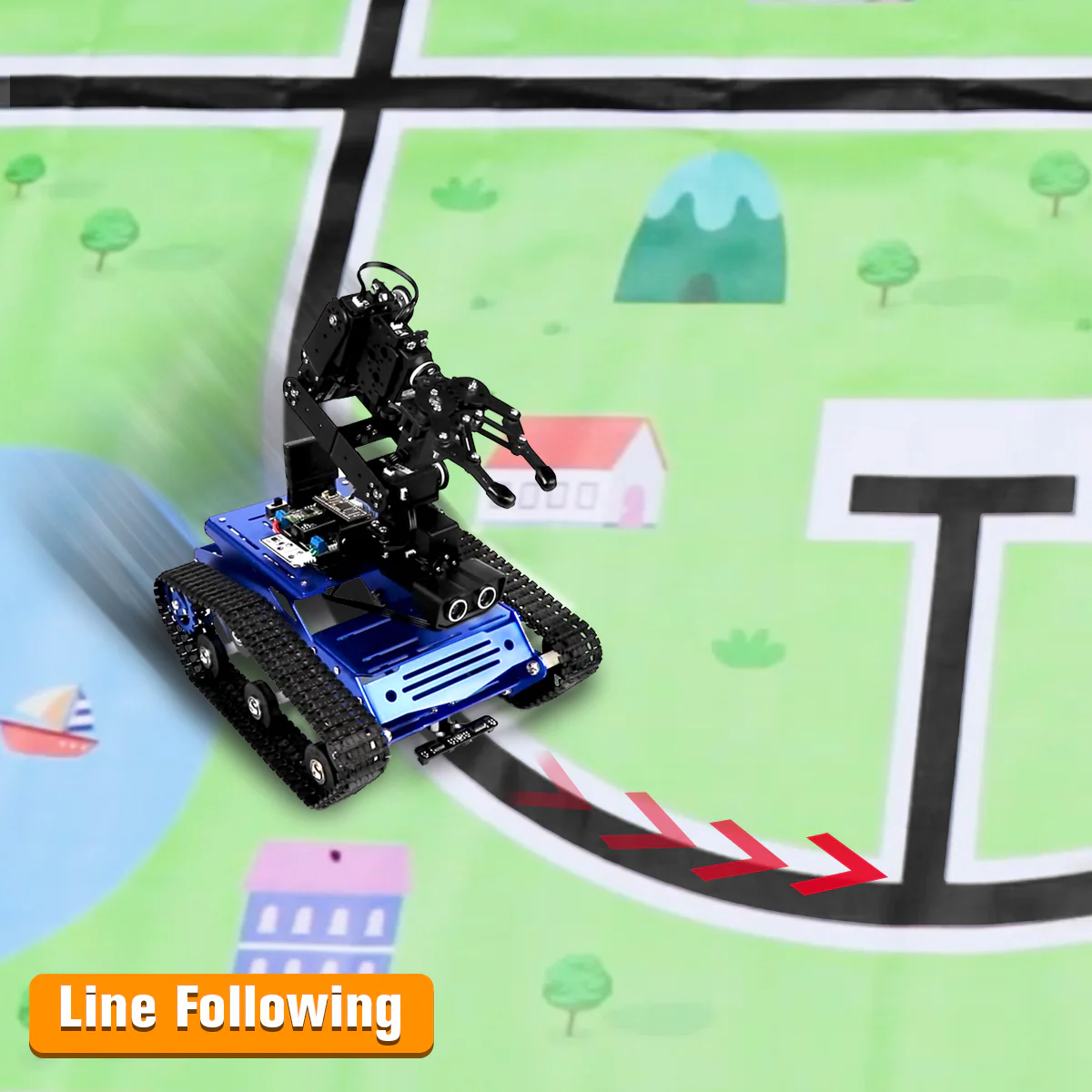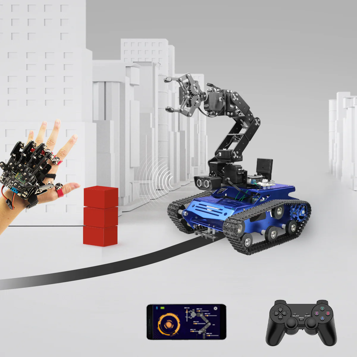 Hiwonder Tankbot Xe robot bánh xích tích hợp cánh tay robot hỗ trợ lập trình STM32 Tương thích với lập trình STM32 Cung cấp mã nguồn và sơ đồ mạch Tích hợp sẵn cảm biến siêu âm, cảm biến âm thanh, cảm biến gia tốc và cảm biến dò line Hỗ trợ điều khiển bằng tay cầm, ứng dụng, bộ điều khiển đồng bộ robot và găng tay không dây