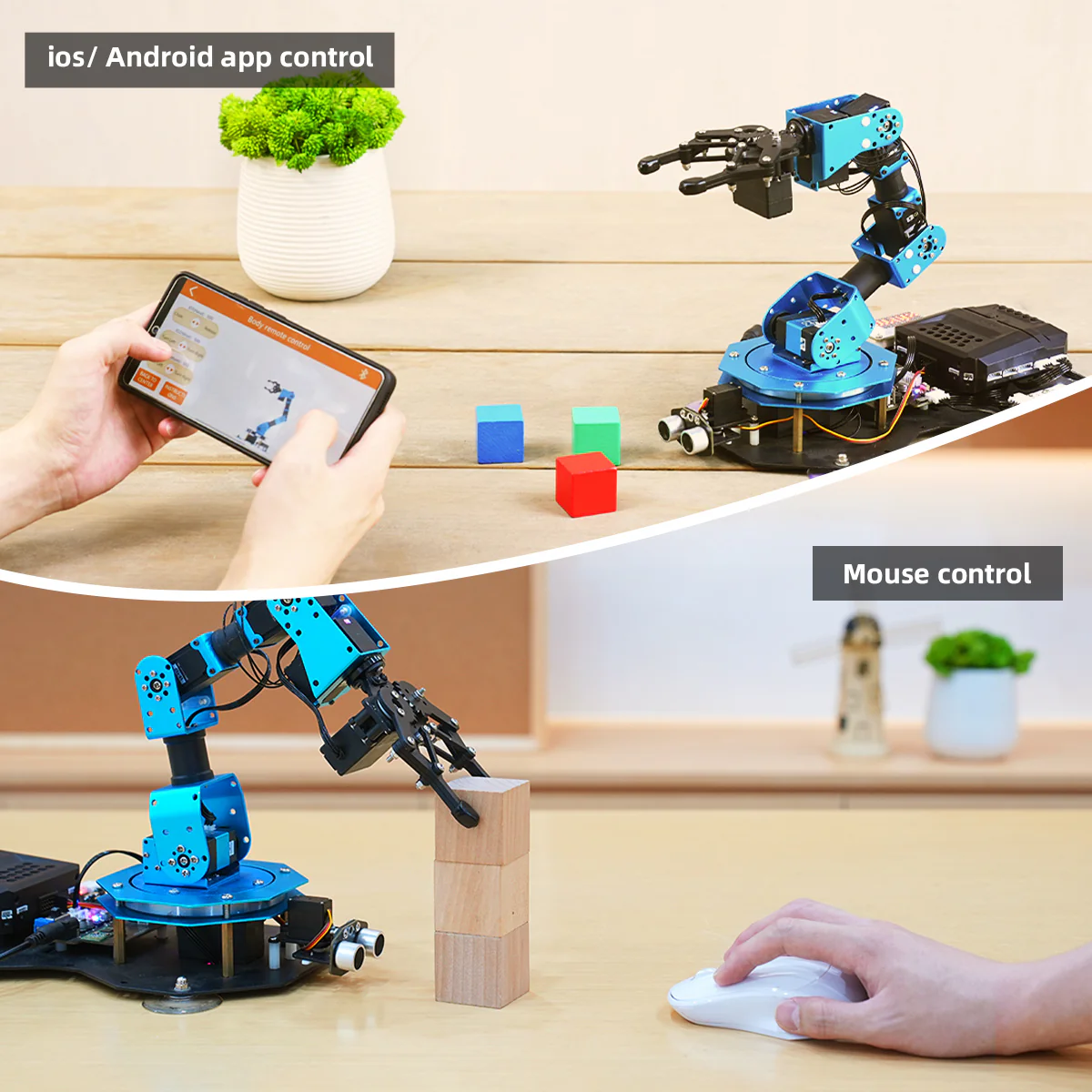 Arm 2.0: Cánh tay robot thông minh thế hệ mới Hiwonder, hỗ trợ Scratch & Python, bộ kit lắp ráp lập trình Bộ điều khiển servo nâng cấp Cảm biến hoàn toàn mới Thuật toán động học nghịch Điều khiển qua điện thoại / PC / tay cầm / điều khiển thủ công offline Dựa trên Scratch / Python Servo bus nối tiếp, bánh răng kim loại
